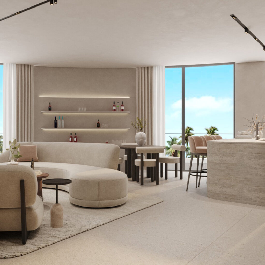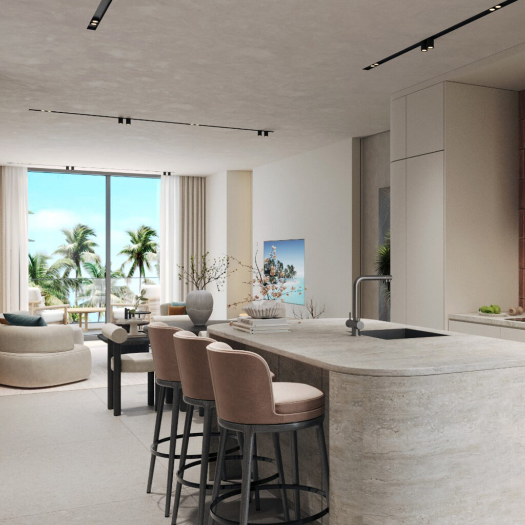 Saphora is redefining the standard for luxury mixed-use living in the Turks and Caicos Islands. The residences, comprising of one, two, three bedroom apartments and two penthouse suites, seamlessly blend European-inspired contemporary architecture with chic, stylish interiors. The spacious layouts and timeless neutral palette of warm earth tones create a calm and inspiring living space. The floor-to-ceiling windows allow for ample natural light and the extended private balconies offer fantastic views of the stunning landscape.
